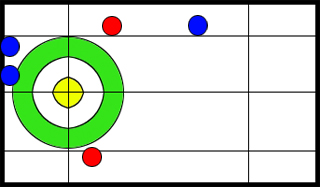 一人一投、各チーム交互に繰り返し、全員投げ終えた時点で円に近いチームに石の数だけ点が入り、それを5回繰り返し最終的に点数の多かったチームが優勝となります。