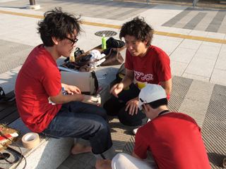 実際に体を動かす高菜ーずと策を練るタクアンズ。実に対照的な両チームです。