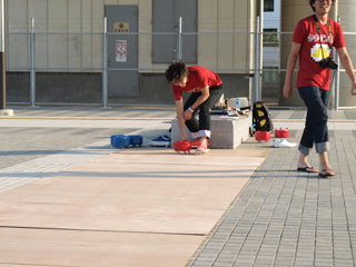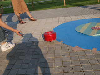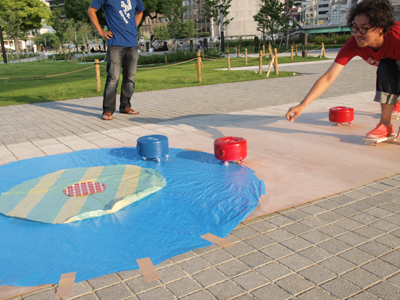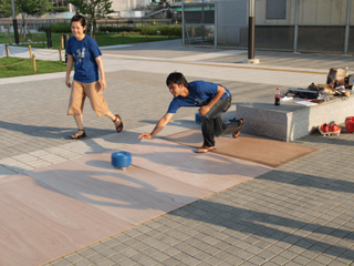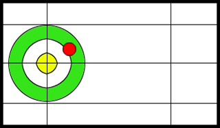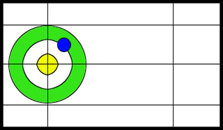 第四フレーム最後の一投です。青い石の内側に入れればタクアンズの得点、入らなければ高菜ーずの得点です。 次の最終フレームを二点差で迎えるか、同点で抑えられるか。