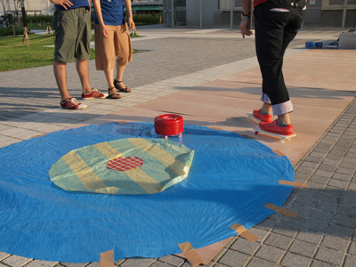円の真ん前まで滑ってきたー!良いのか、これはルール上オッケーなのかー!?