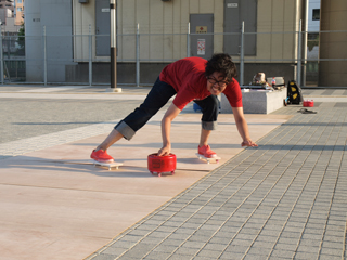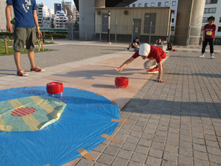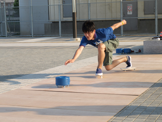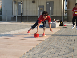 しまった、力んで蹴り出す所で失敗した!上手く力が込められず勢いが足りなくて距離が出ない、安定しない。 だがここでは倒れられない。前へ、前へ。先へ、先へ。限界まで耐えて円にめがけて石を投げた。なんとか入ってくれッ!!