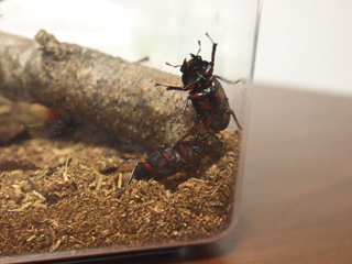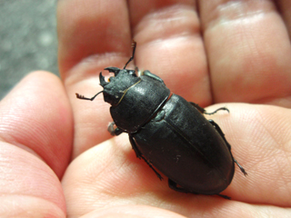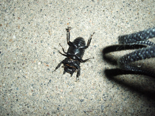 比較的大きく、ずんぐりとした身体つき。アカアシではないが、はてなんだろう。ノコギリクワガタだろうか? 識別できないまま、道路から離れた場所にリリース。