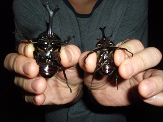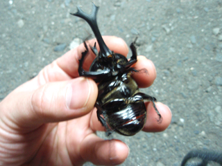 1時間弱の散歩でカブトムシ2匹にクワガタ1匹と、充実の夜だった。