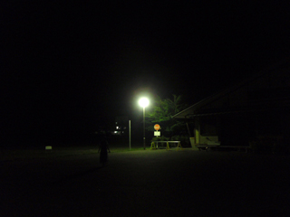小学校のグラウンドの近くにある外灯。川向こうの山から光を遮るものがない。 一緒に散歩していた妻が「あっ」と言ったので近づいてみると、