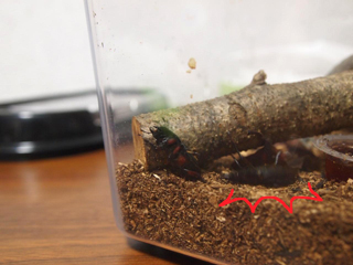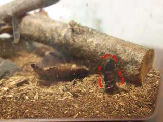 外灯の下で本日2匹目を発見(溝に落っこちなくてよかった)! 赤みがかった身体が綺麗。