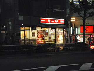 そんなときに目に飛び込んできたのが牛丼店。そういえば代表的な何社かがシノギを削っているし、新宿は馬券売り場や歓楽街といった「男の街」という一面もある。もちろん忙しそうなビジネスマンも多く、ファーストフードの一種として需要は多いのではないだろうか。