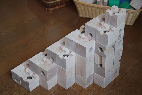 クボロは、やってるうちにトンネルを複雑に組んで思いもよらないところから玉が出てくる喜びをつい追求しがちになる。が、 玉の姿がぜんぜん見えなくなるほどやり過ぎると、それはやっぱり面白くないので、適度に表を玉が通るようにするのがミソのようだ。