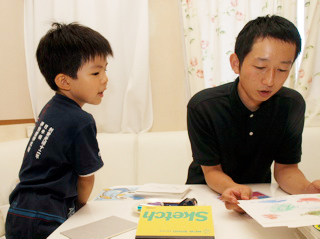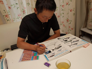絵なら、小学生に負けないと思う。ご自宅にお伺いして一緒に魚の絵を描かせてもらった。