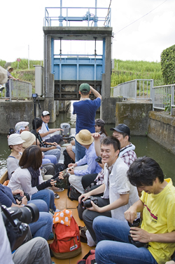 さて、今回のこの利根川のクルーズは、いぜん書いた「高速道路フォントめぐり」という記事で、主人公の赤塚さんとともに同行した@ta_ono さんの企画によるもの。twitterで「いっしょにいきませんかー」と募集があったので参加したしだい。ありがとうございました!またみんなでいくことがあるかもしれないので、興味ある方はフォローするといいと思います。