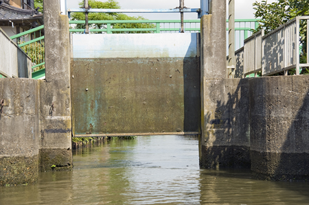 どうやってるのかというと、入ってきた門閉めたら、先の門をあけちゃう!水位違うのでとうぜんごうごうと水が流れていく!ワイルド!
