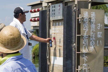 じつは、いままでご紹介した閘門は、すべて船頭さんが行っていました。