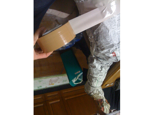 先ほどと同じように最初に裏向けにガムテープを巻きます。