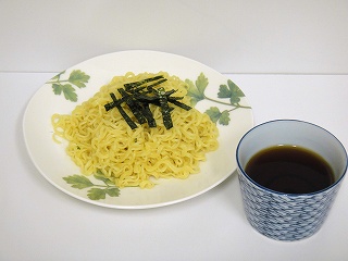 「中華麺・パスタ+めんつゆ」という組み合わせだ。「中華麺+かけつゆ」はすでに紹介した「えきそば」があるが、今回はざるそばのようにつけつゆで食べてみようと思う。