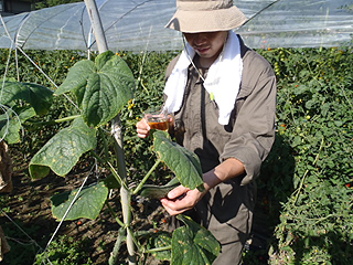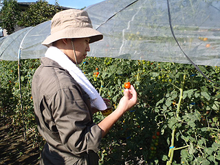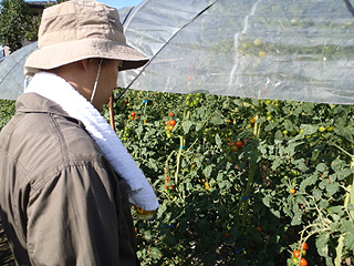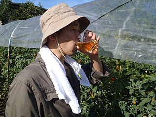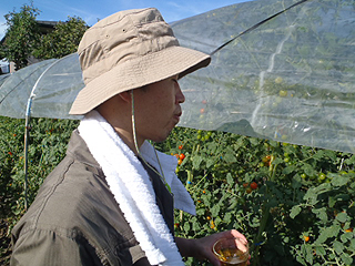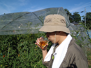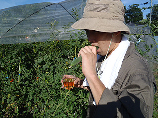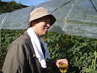ビール片手にツマミを求めてトマトエリアにやってきました。畑の中はトマトの香りが溢れています。とてもいい香り。