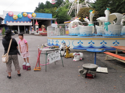 ここの乗り物は、1回乗ると200〜300円くらいはする。幼児一人で乗せるわけにもいかないので、大人たちも一緒に付き添うことになるだろう。フリーパスのような制度はないので、子供の欲望のおもむくままに乗っているとあっという間に金額がふくれあがってしまうのだ。