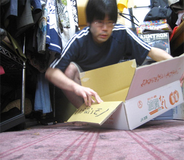 「ん、 なんか手に持ってるけど、 それはさておき ヨシダ久しぶり〜」