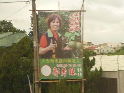 そしてどうやら正しいらしい、と分かるとちょっぴり安堵。目的地に近づくたびに麻豆の名産である「文旦(日本では「ザボン」の方が一般的?)」関連の看板が増えてきた。 |