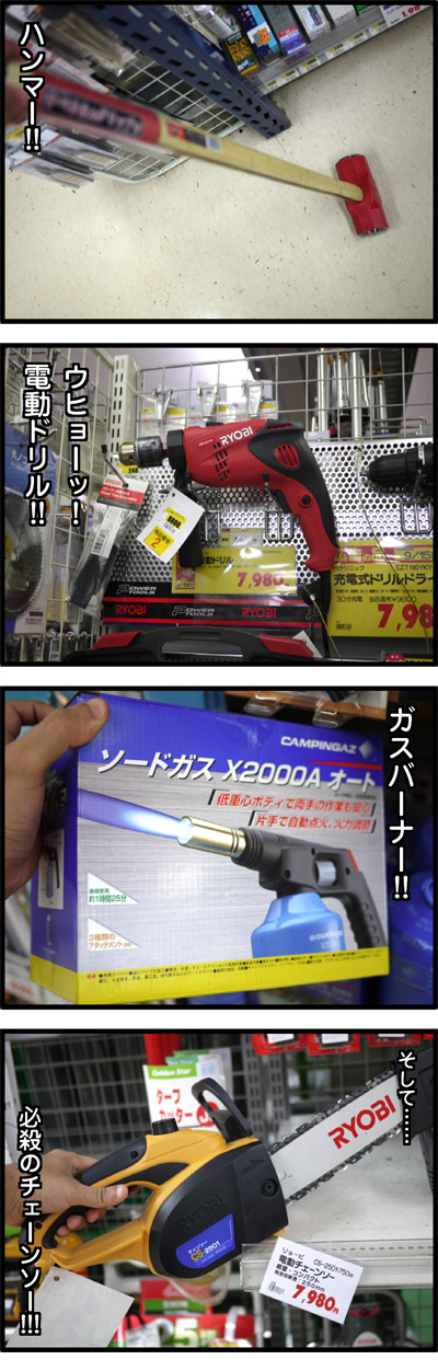 ……というわけで、ホームセンターが最強だということが分かったわけですが、あんまりとっさの危機にその場にある物で戦う、という記事にはなりませんでしたね。