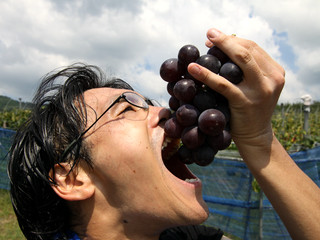 | 巨峰にかぶりついている写真を撮っていたら「食べ方違うよ」と、近くにいたおばちゃんに諭された |