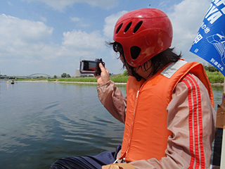 いかだに触れると水面下に力強い川の流れをビシビシと感じる。あんなに大きかったいかだが大自然の中では心もとなく見えた。