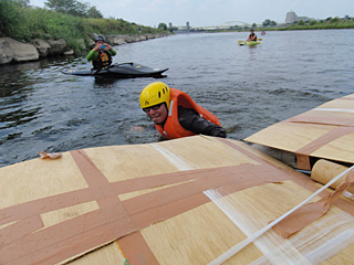 浮力は体重の2倍もいらなかったかもしれない、それから甲板部分はベニヤじゃない方がよかったかもしれない、などなど。いろいろと反省すべき点や気付いた点があったので、これはぜひ次に生かしたいと思っています。
