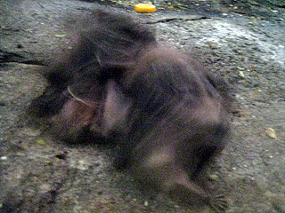 地面に落ちたりんごに5匹くらい集まってきて毛玉状態に