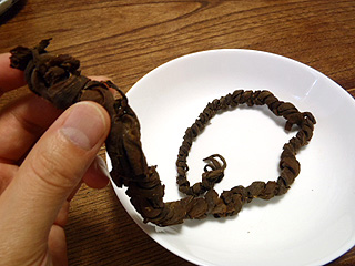 そのまま食べると意外に旨かった芋がら縄。最初にも書いたように、戦国時代の兵士はこれを戦場食として携帯していました。ならば私も携帯して外に出て味噌汁になるか確認してみます。