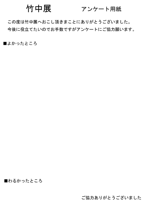 来場者に配ったアンケート用紙です。