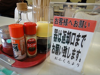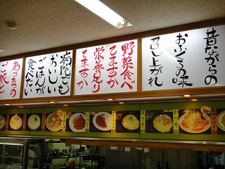 ともすれば無機的な感じが漂う場合もある病院の食堂だが、この店にはなんだか親しみやすい雰囲気がある。テーブルの上のお願い板 に「おふくろより」と添えてあるのもユーモアだろうか。