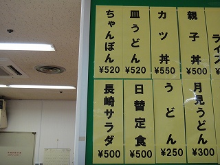 ちゃんぽんは520円との表示。これまで紹介した最安値を更新だ。それはいいのだが、ちゃんぽんの下にあるのが気になる。「長崎サラダ」ってなんだろう。