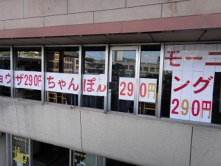 ギョウザやモーニングと並んで、「ちゃんぽん 290円」とあるのだ。一瞬目を疑うくらいの安さ。