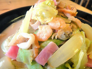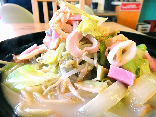 店名とメニューとのマッチングの意外性に戸惑いながらも、食券でちゃんぽんを購入。しばらくすると、「ちゃんぽんのお客さまー」と呼ぶ声がした。