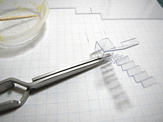 細かな接着面をしばし押さえるのに、逆作用ピンセットが抱きしめてあげたいくらいすごく役に立つ。