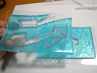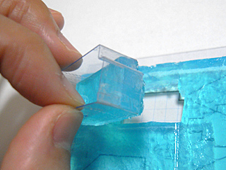 しかし、単に設計図の通りにカッターなどで掘っていては、崩落の危険もありそうだ。ここは慎重に、塩ビ板で骨格を作って補強し、掘削することにした。