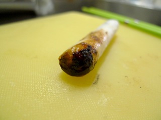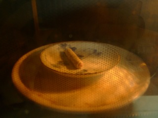 直接コンロであぶるのは加減が難しく、柔らかくするのを通り越して燃えてしまった。 なので次は調整が楽な電子レンジで温めてみる。