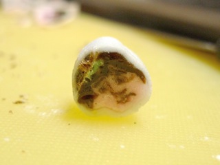 ここまでは金太郎飴の顔を途中で変えるという企画上、切ってみるまで顔がどうなってるか分からないように
