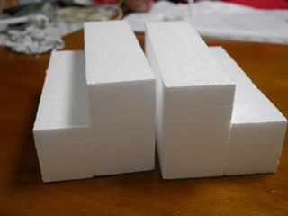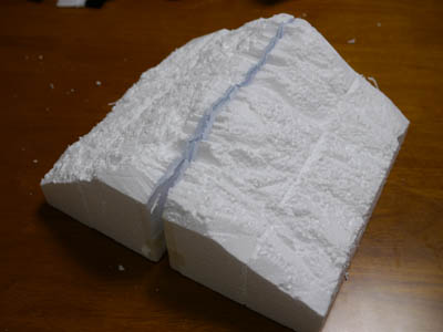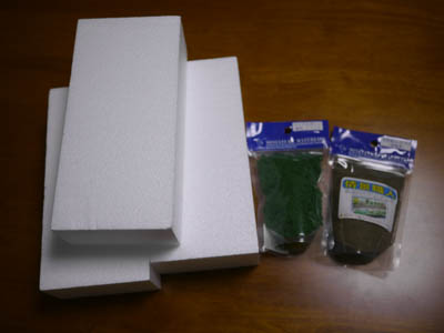 発泡スチロールのブロックと、ジオラマのセットを作る用の土と草を模したスポンジを買ってきた。調べたら山は簡単に作れるそうだ。