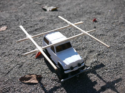 しかも割り箸で作った骨組みで、ドル円山を乗せて運ぶことができるようになっている。