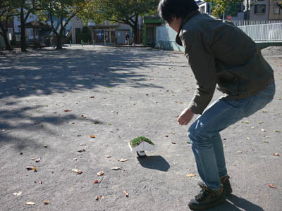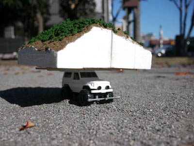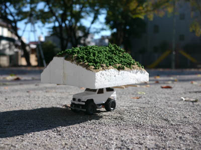 「ダイナミズム=動的」ということで、どうやったら動くのかと悩んだ末にミニ四駆に乗せて走らせてみた。