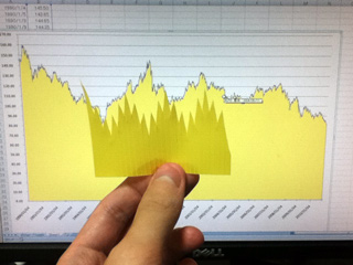 断面が丸見えなのがクオリティを下げている予感もするが、これで頂がここ10年間のドル円チャートと同じ山の模型の完成だ。