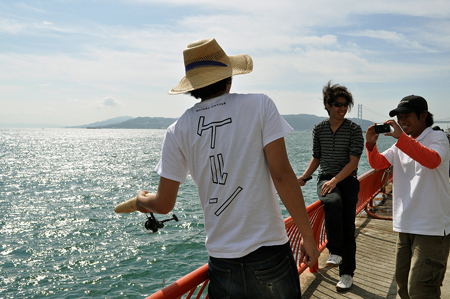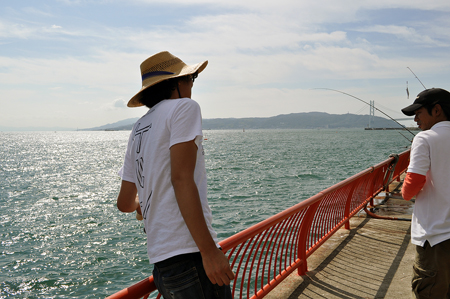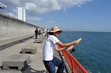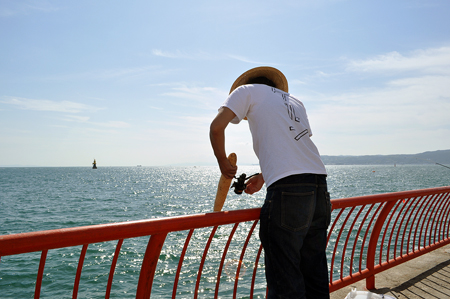 今度こそはと長芋竿を振る。と、職員の方に声をかけられた。