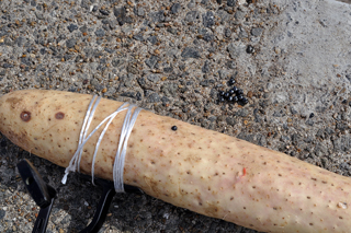 その対策として釣り芋はどうか。魚釣るために持っていったものだし、別に負けたから買った訳ではない。しかも美味い。長芋ならば実用に耐えるし、しかも美味い。