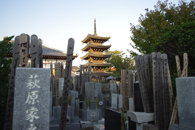 中国や台湾なんかでは人が亡くなると、あの世でも楽しく暮らせるように車や家といった資産を模した紙細工を棺桶に入れるそうですが、墓の近くに五重塔があるってのもいいよね。墓=家と考えると。といって金閣寺とかだと派手すぎるしな。