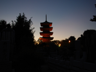 さて5つ目は2つ塔を回った後だったのもあり、秋のつるべ落としな陽のせいでけっこう暗い夕方タイムに。五重塔は見えるのか?