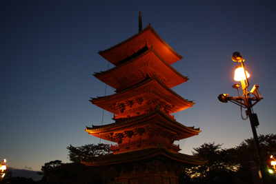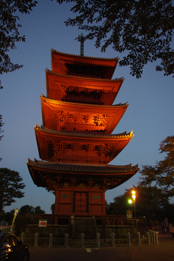 お墓のど真ん中にライトアップ!池上の五重塔