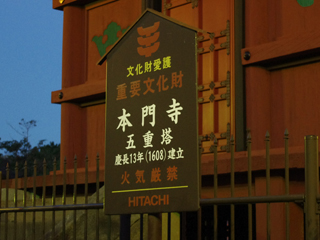 せっかくなので力道山先生のお墓も参ろうとしたけど暗くて分からず…。しかし五重塔は分かりましたよ!