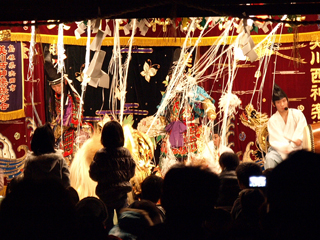 東京だとそれくらいの若者が「神楽見にいかネ?」ということはまずあり得ないが、ここでは若者たちが、それこそ片手で携帯をいじりながら神楽を見ているのだ。