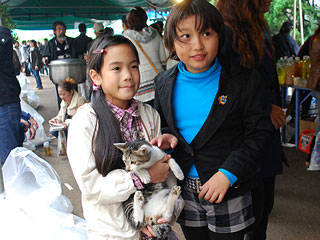タイらしく、猫もいる。寺院の猫ポイントは、裏の竹やぶの近くらしい。この子たちが教えてくれた。