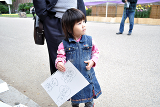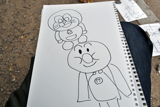 似顔絵描きませんかー。と言っていたら子供がアンパンマンに興味を示した。あげるよー。と紙をあげたら、親御さんがじゃあ似顔絵も描いてもらいなー。と描かせてくれた。