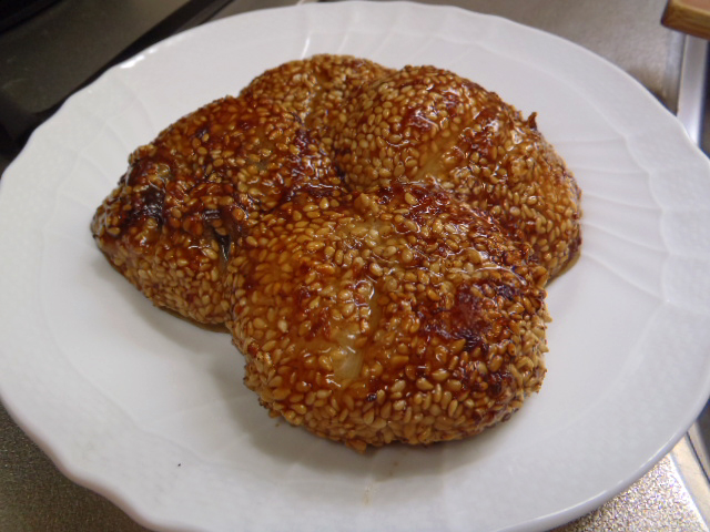 餅がとけてフライパンに貼りつくことを懸念して、少し大目の油で炒めてみたところ、問題なく炒めることが出来ました。胡麻もガードになっていたようです。タレも上手く絡み、見た目は美味しそうに見えます。